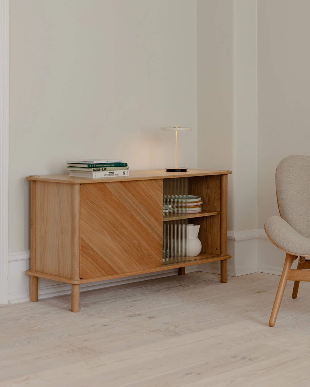 Eos Evia sprider ett mjukt sken med sina naturliga gåsfjädrar – perfekt för mysiga stunder. För en modern touch är Asteria det stilrena valet, och om du söker förvaring, är Umages skänkar en snygg mix av klassiskt hantverk och moderna detaljer.